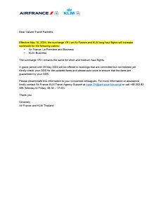 Increase of YR-I Surcharge on Air France and KLM Long-Haul flights